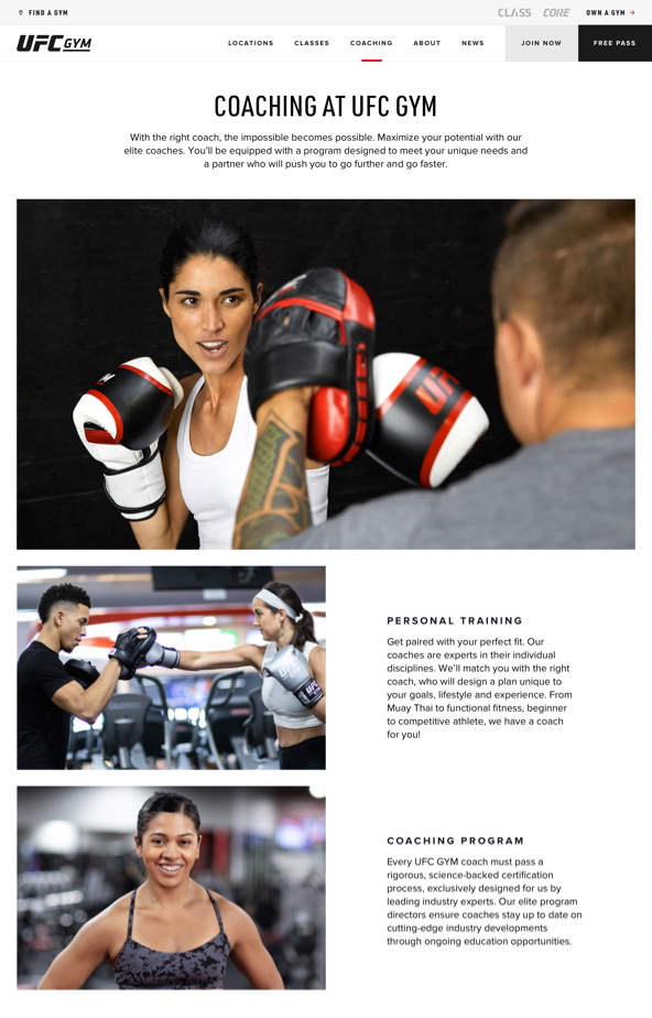 Since location pages are highly visited and have lower bounce rates, we allowed individual locations to manage their content with an approval to publish process. Franchises get more flexibility to include their biggest sales magnets like specials and new, on-trend classes. Guest passes and discounts promoted by individual locations proved key to getting people through the door. With UFC’s strong commitment to community, we empowered each gym to own its unique identity to bolster community pride.