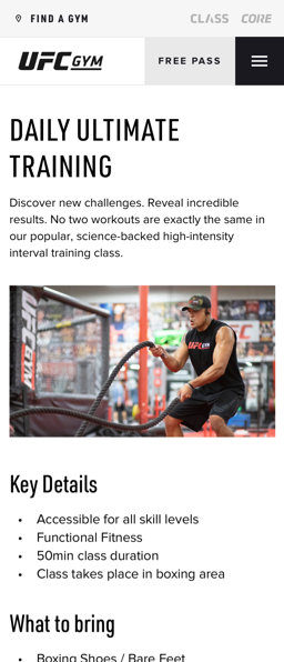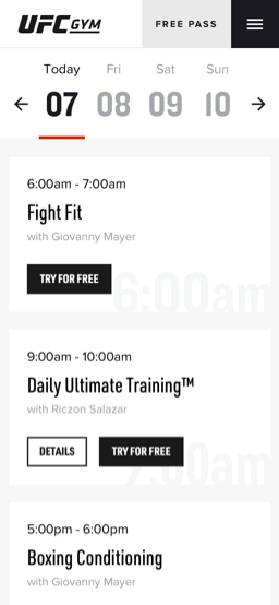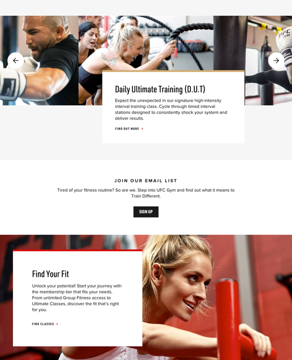 Since location pages are highly visited and have lower bounce rates, we allowed individual locations to manage their content with an approval to publish process. Franchises get more flexibility to include their biggest sales magnets like specials and new, on-trend classes. Guest passes and discounts promoted by individual locations proved key to getting people through the door. With UFC’s strong commitment to community, we empowered each gym to own its unique identity to bolster community pride.